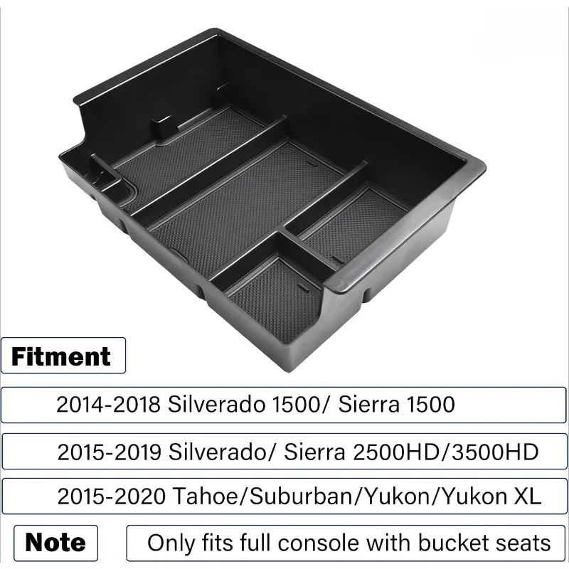"[Exact FIT] - upgraded console organizer tray compatible with Silverado/Sierra 1500(2014-2018) and Silverado/Sierra 2500/3500HD(2015-2019) and Tahoe/Suburban/Yukon/Yukon XL(2015-2020), ONLY fits full console with bucket seats.