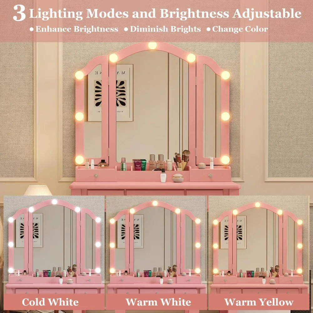Vanity with Lights Girls Vanity Desk Set with Drawers Makeup Vanity Desk with Mirror and Lights Make Up Pink Makeup for G