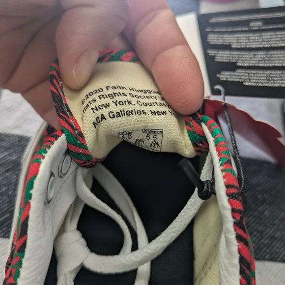 Brand : Vans Color : Black green red purpleSize: Youth 4Women 5.5bin maddCondition New with tags and no box Limited comments: Vans Off The Wall Era MoMA Faith feature two of her feminist poster pieces, with RinggoldWoman’s FreedomFaith Ringgold, the only living artist feature in the collection, collaborated with both the Vans and MoMA teams to translate her artwork onto shoes. In the pack, the Era has been reworked to Woman Free Yourself taking over the left side while Freedom Woman Now (both 1971) appears on the right. Please ask any questions before purchasing
