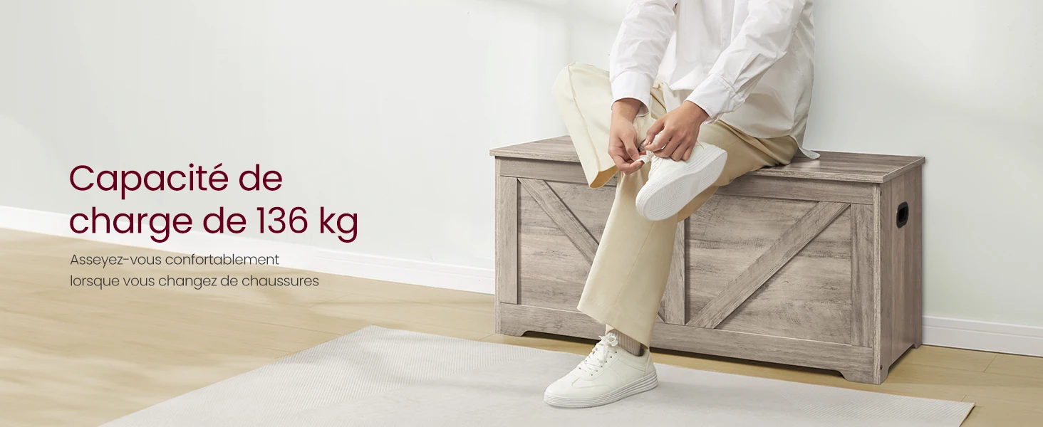 【BONNE CAPACITÉ DE CHARGE】Le dessus supporte jusqu'à 136 kg et le compartiment peut contenir jusqu'à 60 kg. Vous pouvez vous asseoir sur le banc,changer de chaussures en toute tranquillité,il y a beaucoup de place dans le coffre