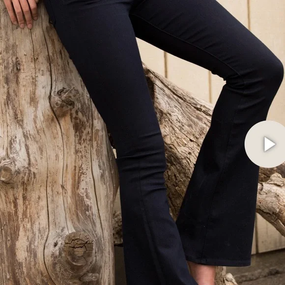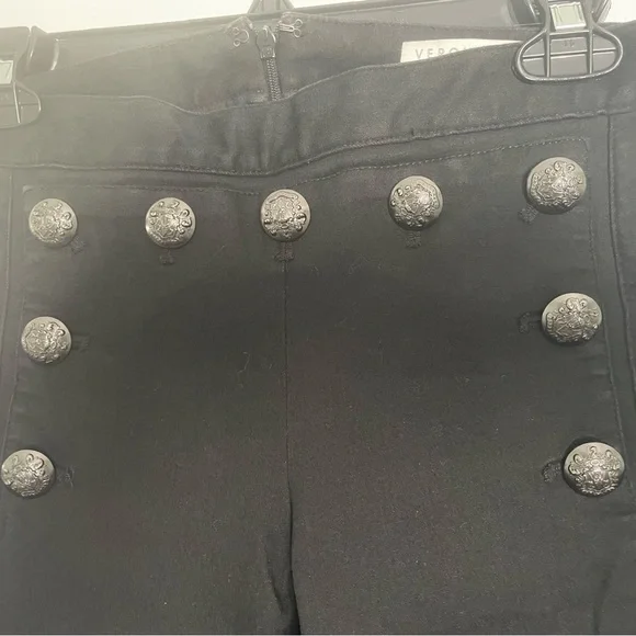 The nautical-inspired Beverly flare jeans feature black with gleaming crest buttons. The use of high-quality stretch denim to ensure a flattering fit and quick recovery. Stylish black flared pants for a chic look. Perfect for any occasion.