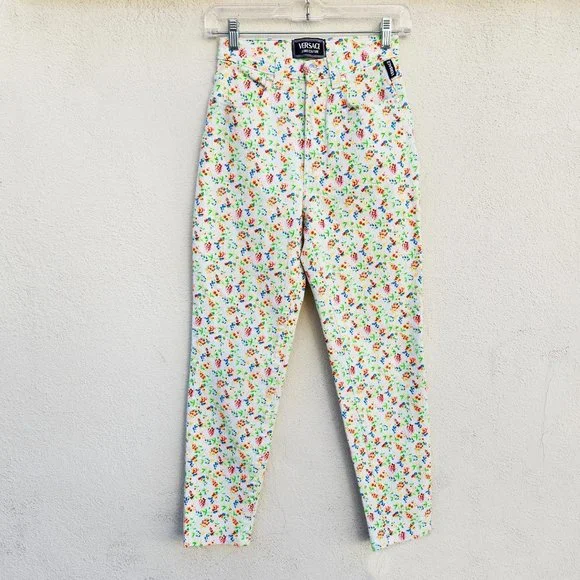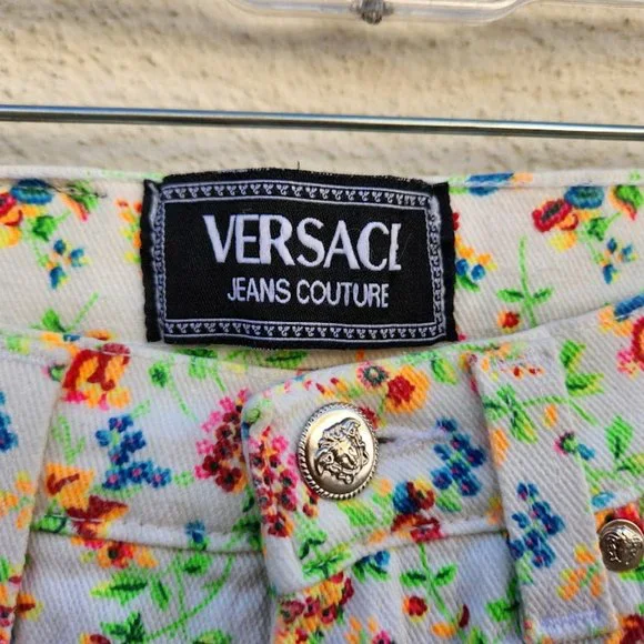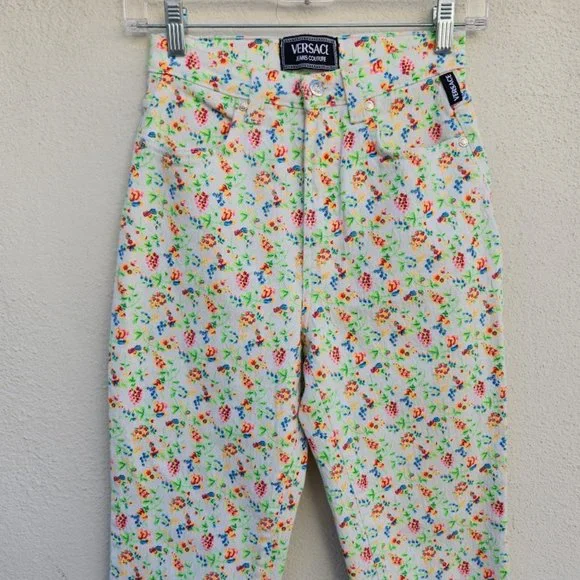 BRAND: VERSACE CoutureDESCRIP: Floral High Waist JeansSIZE:24 waist size (see msmts below)FABRIC: 98% cotton, 2% elastane STRETCH: yesLight/normal wearNo notable flawsCONDITION: pre-owned, very good!APPROX MSMTS TAKEN FLATwaist:11.5"rise:16.5inseam: 28"➡️ Ships in 1-2 biz days➡️ REASONABLE Offers & Bundles welcome!➡️ NO TRADES!floral neon designer italian high rise red greenorange flowers