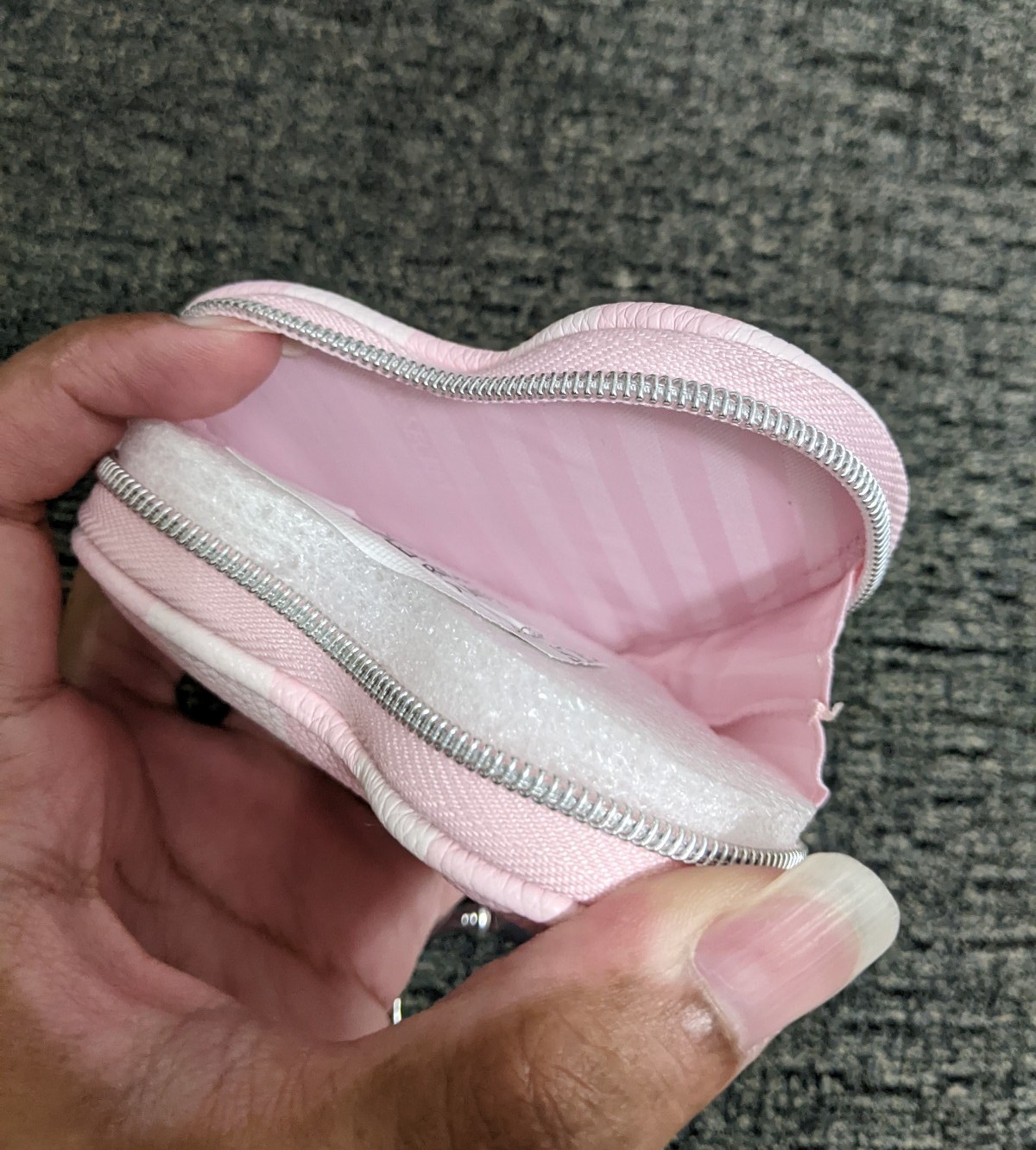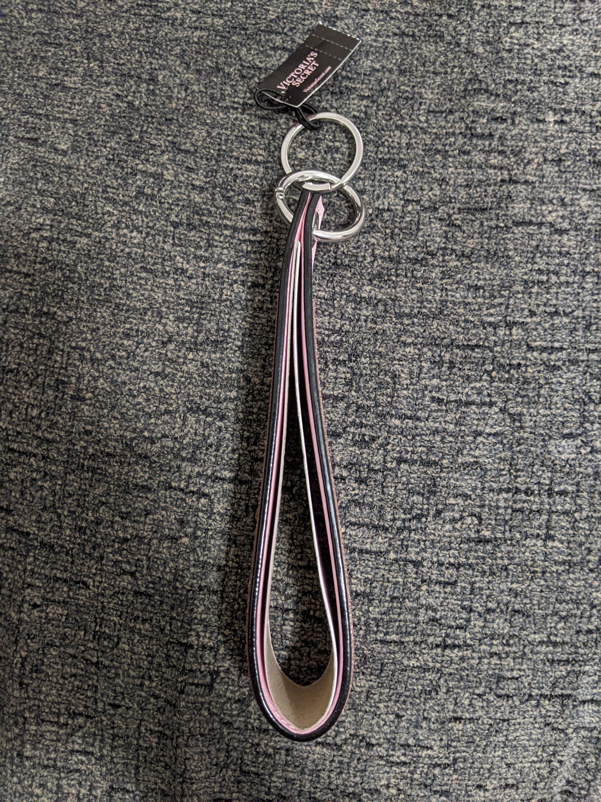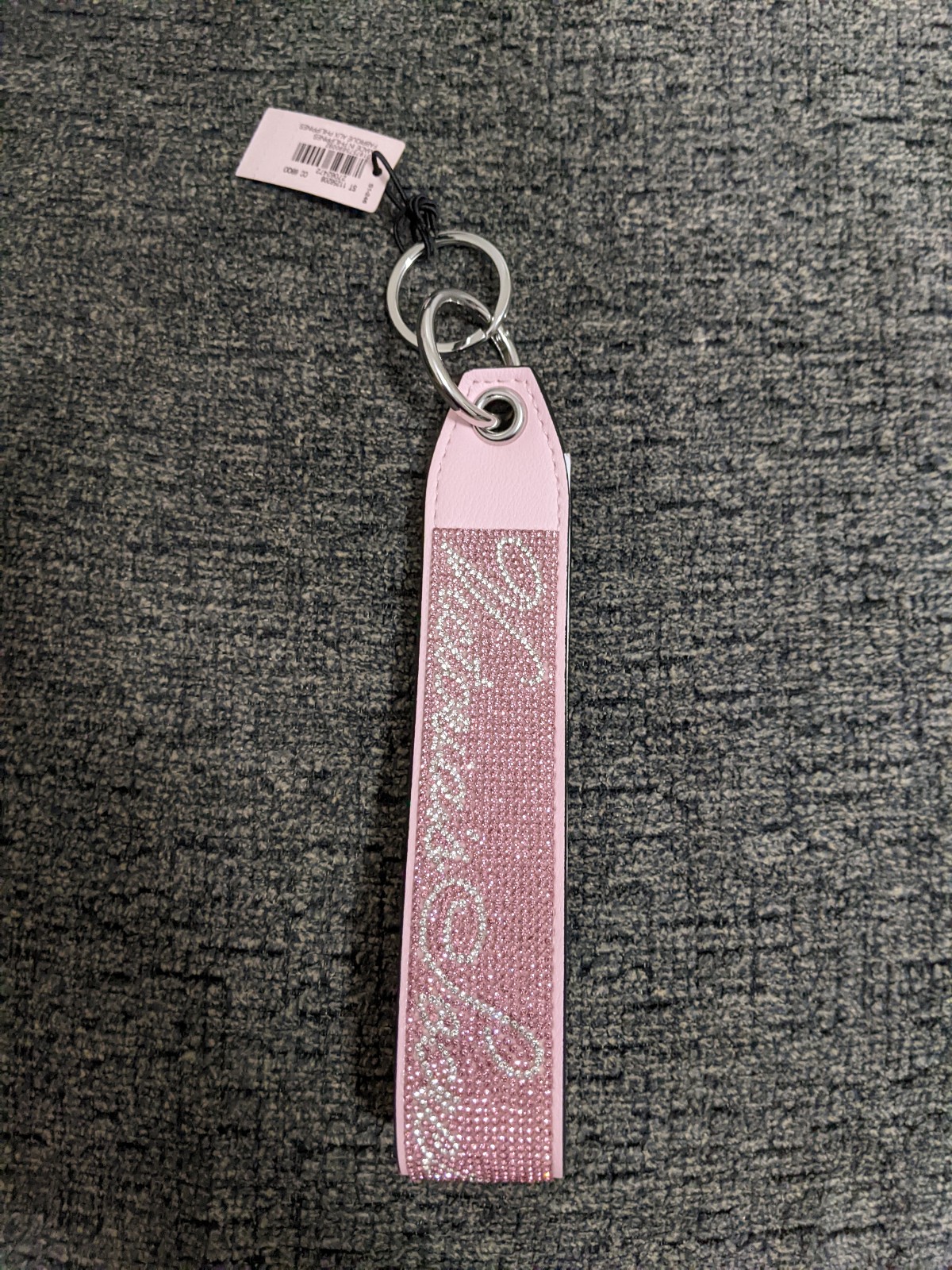 This listing is for one heart pouch keychain in heritage stripe and one wristlet strap keychain in pretty blossom pink as shown in the pictures