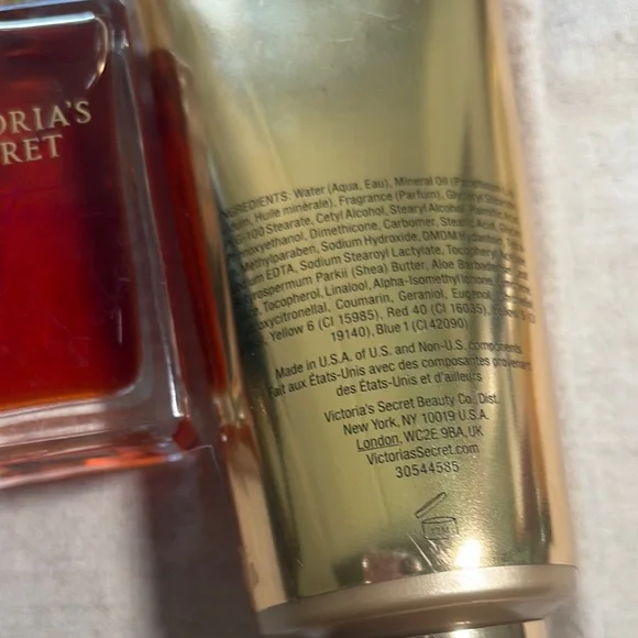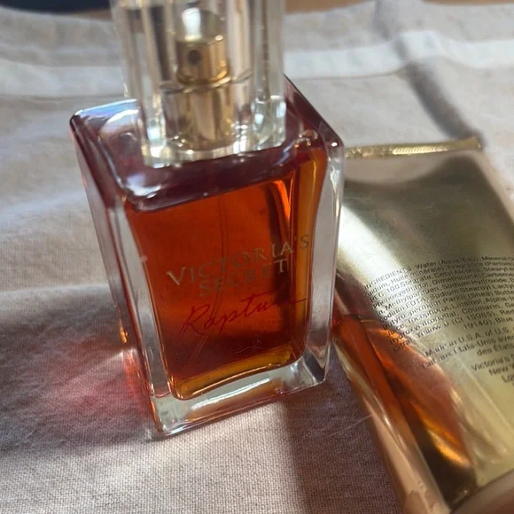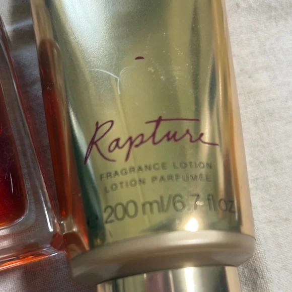 Victoria's Secret Rapture set, a luxurious exotic fragrance and lotion. Elegant gold and red packaging. Discontinued scent, if you know it you love it! Warm, alluring, transcendent! Set of two items includes large 6.7oz body lotion. No box but these are basically new, only tried once, loved it so much I bought multiples and now selling the extras!!