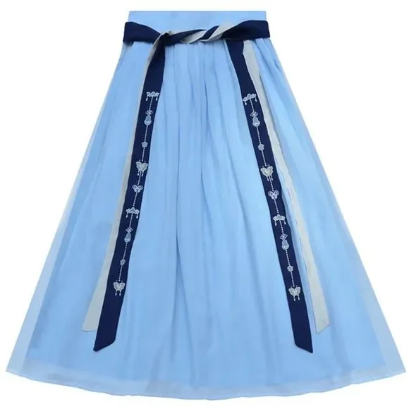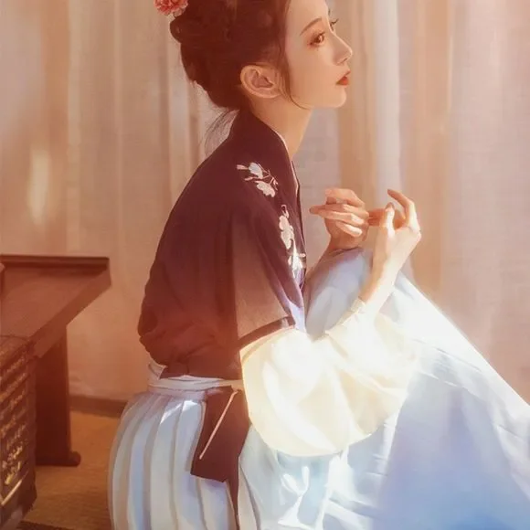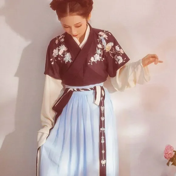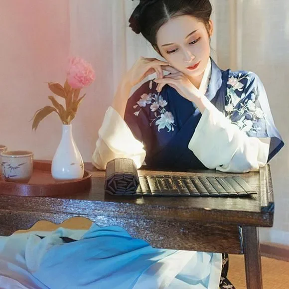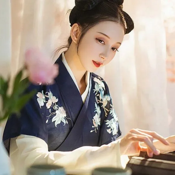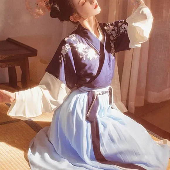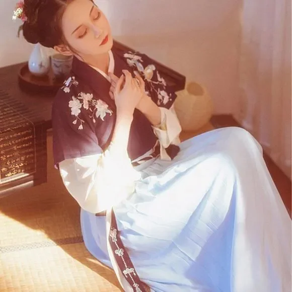An Asian-inspired dress with a modern twist. This ever so elegant dress set was designed thinking about the sophistication and simplicity. The vintage vibe crossed with the stunning black-blue contrast really works well to give the 80's look with a modern twist. EmbroideredAdjustable waist with skirt tiesPerfect for casual look on work/school daysFull set includes a top and a maxi skirtSize XS/S: top bust 34, length 22; skirt waist 29.1, length 37.8