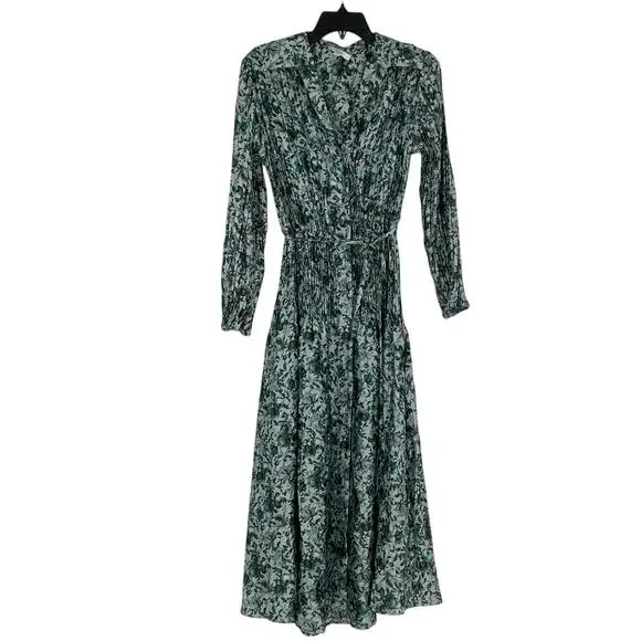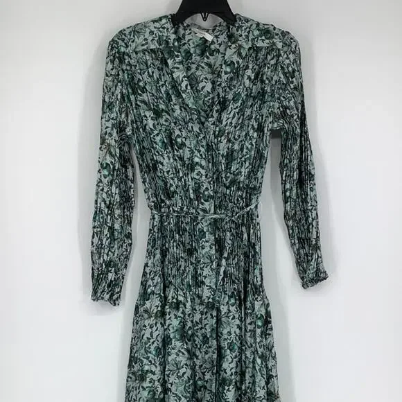 Brand: Vince Size: Small Style: Shirt DressColor: Green MSRP: $595Condition: New with original tags. Our pleated shirt dress features a sweeping V-neckline and easy slim bodice. The skirt blooms open for easy movement to capture the light.Features:Button through front.Hidden button placket.Agoya buttons.Self-tie at waist.Elastic waistband.Hand wash cold. Line dry. Or dry clean. Do not iron.100% Polyester.-HL