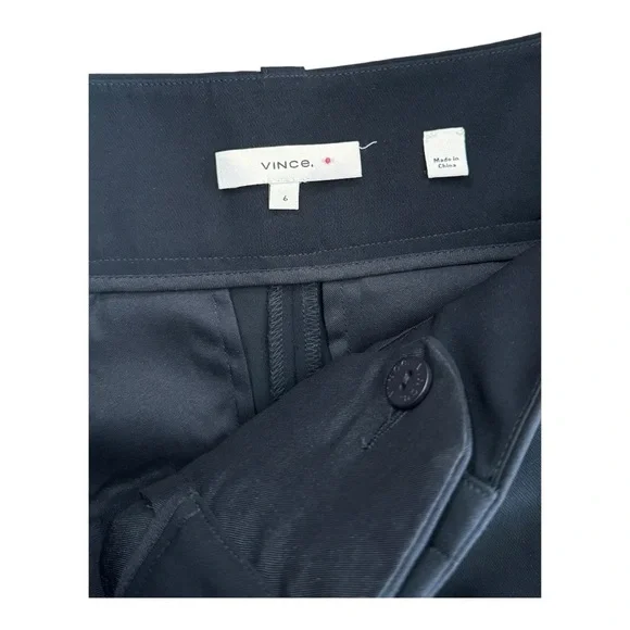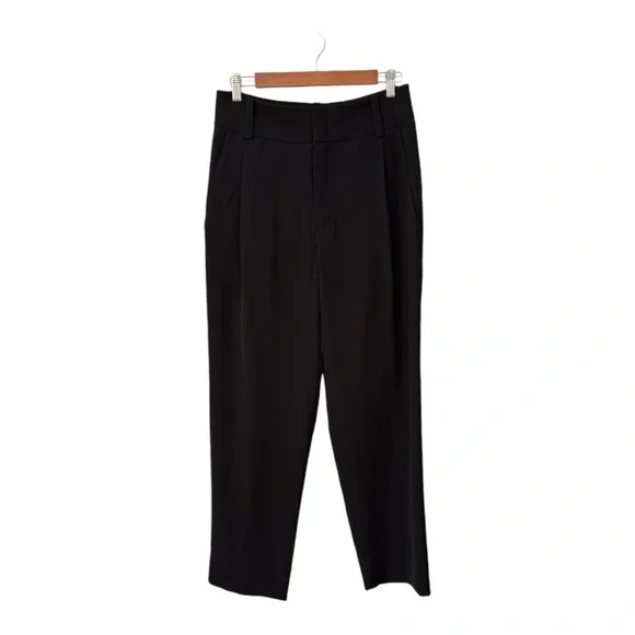Vince tapered trouser pants in black. MSRP $345.00Size 6Measurements by hand:Waist across flat 15”Rise 12”Inseam 32”Condition: EXCELLENT! No flaws, belt unfortunately is not included but could replace with any belt, or wear without!100% PolyesterDry Clean OnlyImportedClosure type: ZipperAbout this item• A slight taper and high waist frame the form of our fully-lined soft crepe pant. Front pleats, front and back pockets (back pockets are still unopened)• Effortless• TimelessDescription:Set high on the hip, our tapered trouser draws a long line with a crease front.