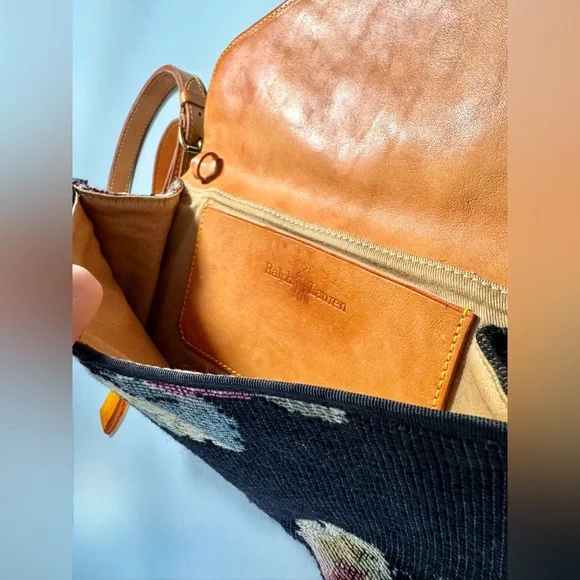 This vintage Ralph Lauren shoulder or clutch bag features a unique floral tapestry exterior and leather inside. The rectangular shape and small size make it perfect for everyday use. The tan leather strap provides comfort and durability, strap can be removed and it can be carried as a clutch. The bag has a beige lining and is in great condition.ready for a new owner to show it off.