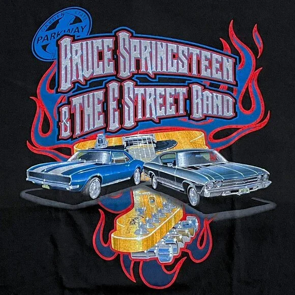 A rare Bruce Springsteen Event T-Shirt from the Y2K period. The art celebrates Rock & Roll, the Garden State Parkway & the Great American Muscle Car. Get your “Born To Run” vibe on with this unique and extremely rare tee.Murina. 100% Cotton Graphic Tee.Condition: Gently Worn. Size And Measurements: Men’s / Uni-Sex / 2 X-LargeWidth 24.75” - Underarm to UnderarmLength 31.5” - From Shoulder to Waist Hem#brucespringsteen #springsteen #theboss #estreetband #music #brucespringsteenandtheestreetband #brucespringsteenfans #rock #bornintheusa #borntorun #brucespringsteenconcert #rocknroll #estreetfans #estreetnation #brucespringsteenitalianfanclub #stevenvanzandt #asburypark #pattiscialfa #trampslikeus