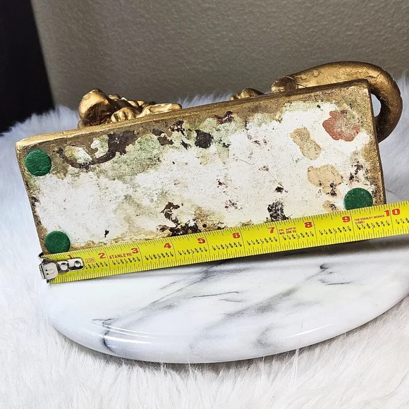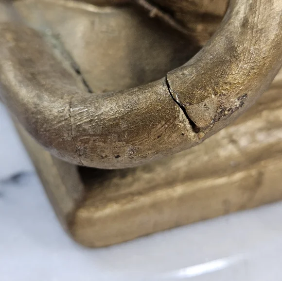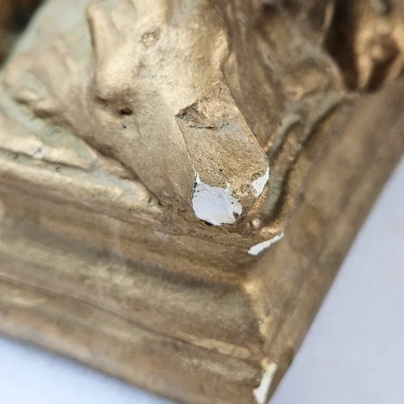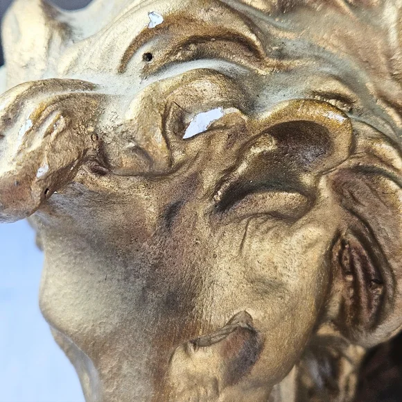 Welcome to my closet 🙂 Thank you for visiting!In good condition with some flaws. It has a couple of small knicks and cracks under glaze, as is very common in these vintage plaster pieces. Please examine photos closely as they are a part of the description. It would look wonderful in the dark academia asthetic hanging out with books on a book shelf.
