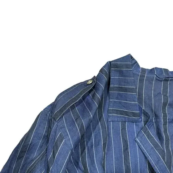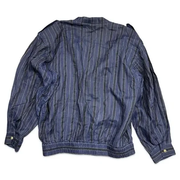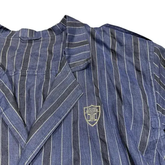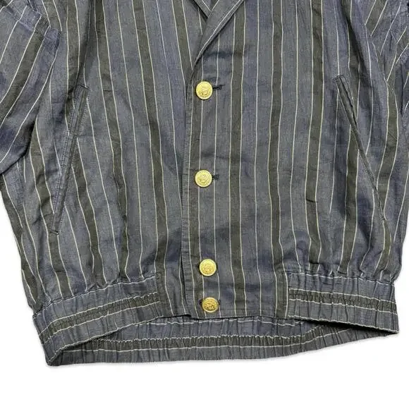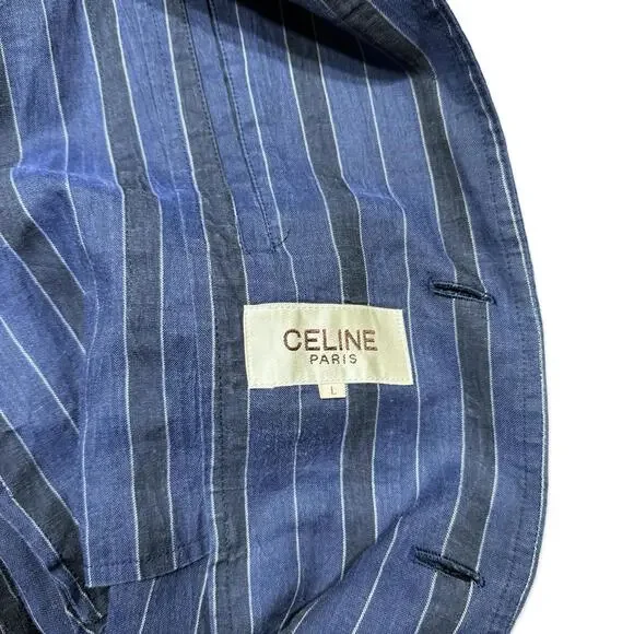 Vintage Celine Striped Lightweight Overcoat BlazerSize largeElevate your style with this Vintage Celine Striped Lightweight Overcoat Blazer, perfect for casual outings or cozy evenings at home. Featuring a stylish pinstripe pattern in deep navy and light grey, this piece combines comfort with classic fashion. The front buttons add a chic touch, while the soft fabric ensures ease of movement. Key features include:#celine #vintagedesigner #luxury #avantgarde
