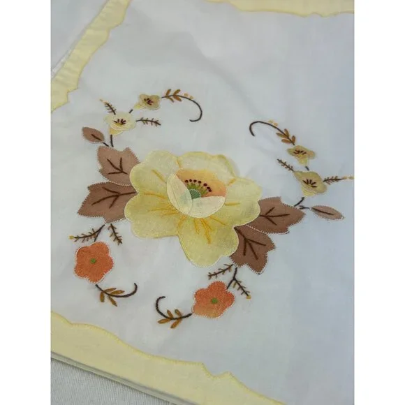 Vintage Hand-Embroidered Floral Linen Placemats Set Of 4 Yellow Brown Orange
