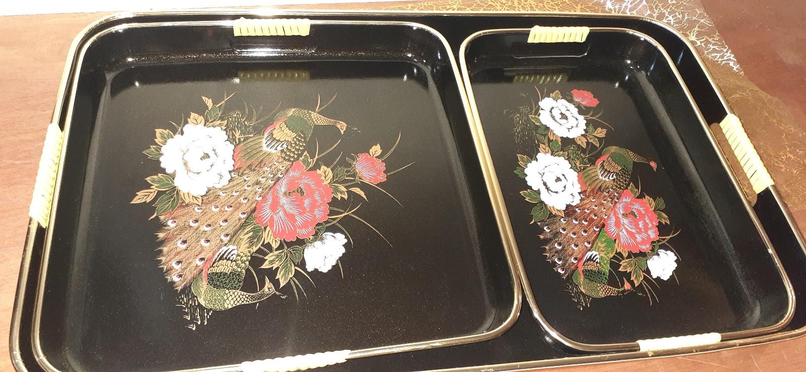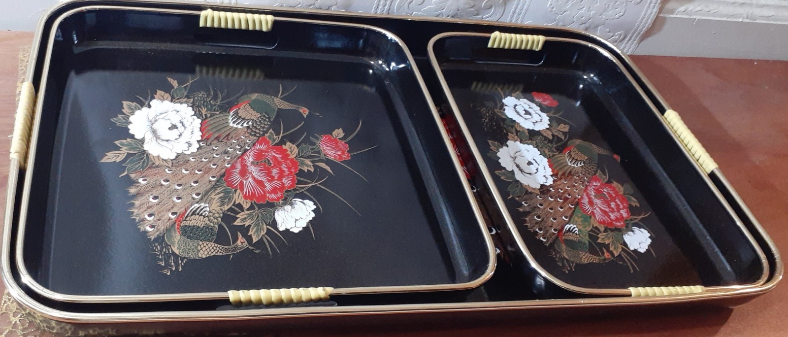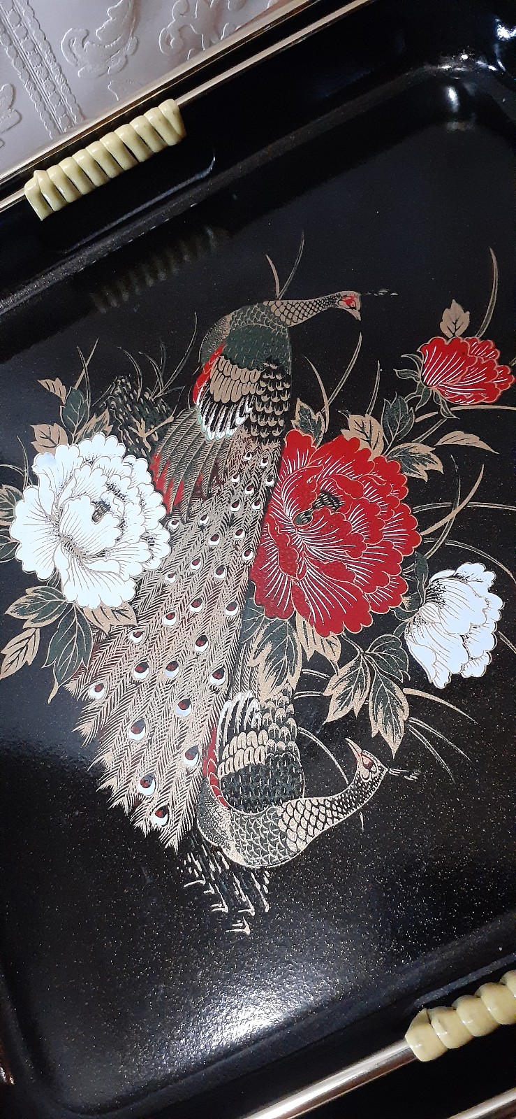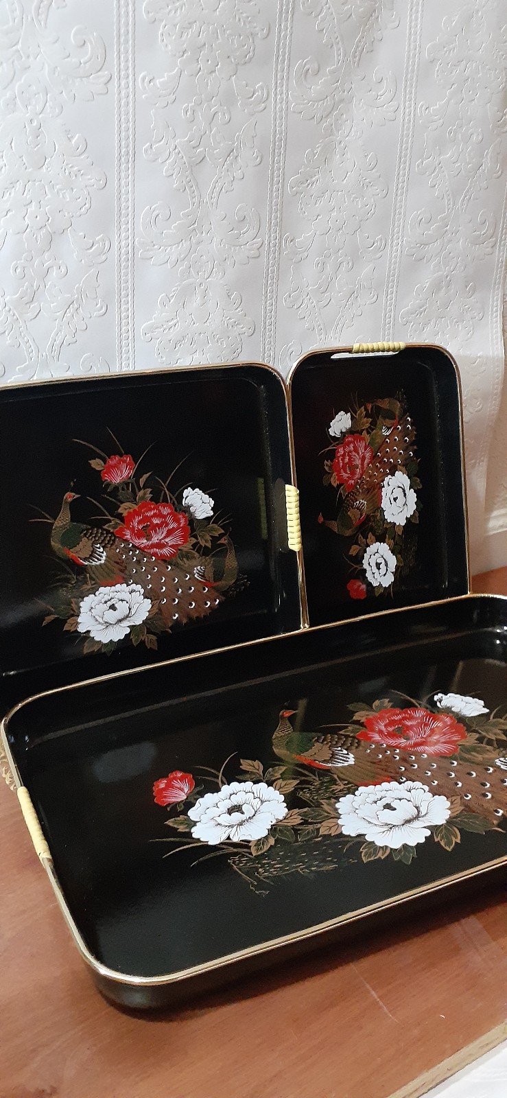 Beautiful vintage 3 piece lacquered tray set, made in Japan. In excellent condition. Foiled gold and sparkles in the background give these a regal depth. Bundles and offers welcome! Check out my page for tons more cool stuff!