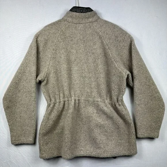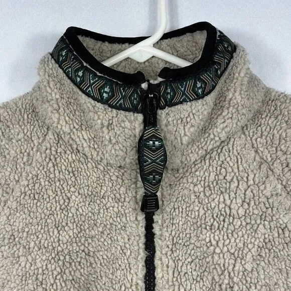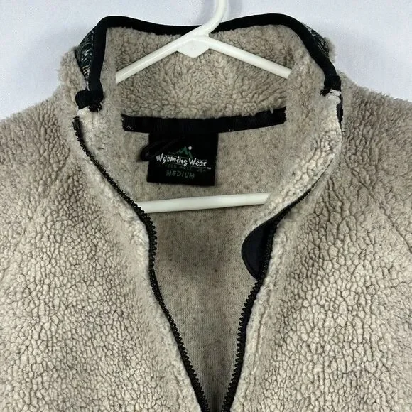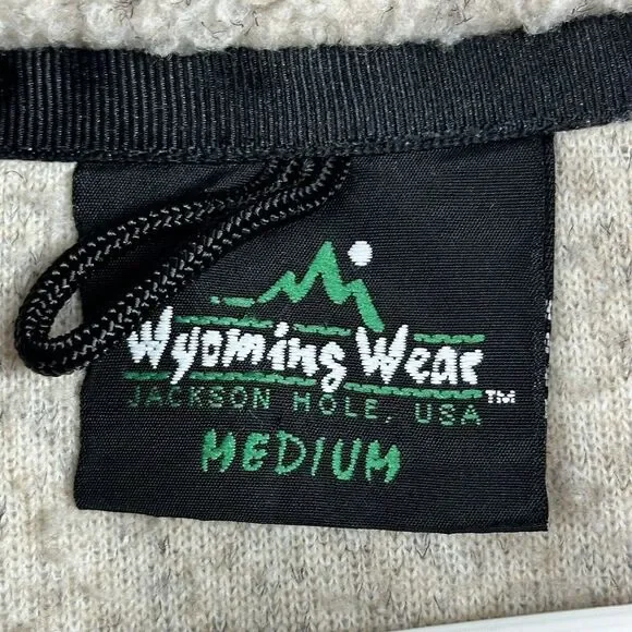 No stains or ripsMeasurements in photosThis vintage jacket from Wyoming Wear is the perfect addition to any wardrobe. The Aztec pattern on the brown acrylic outer shell gives it a unique look, and the full zip closure makes it easy to put on and take off. The fleece fabric type makes it warm and cozy, perfect for cold weather, and it comes in men's size medium. The jacket features the Wyoming Wear brand and a USA theme, showcasing your patriotic side. It's suitable for wearing in winter, fall, and spring.