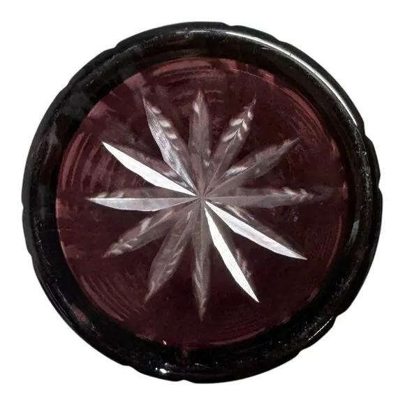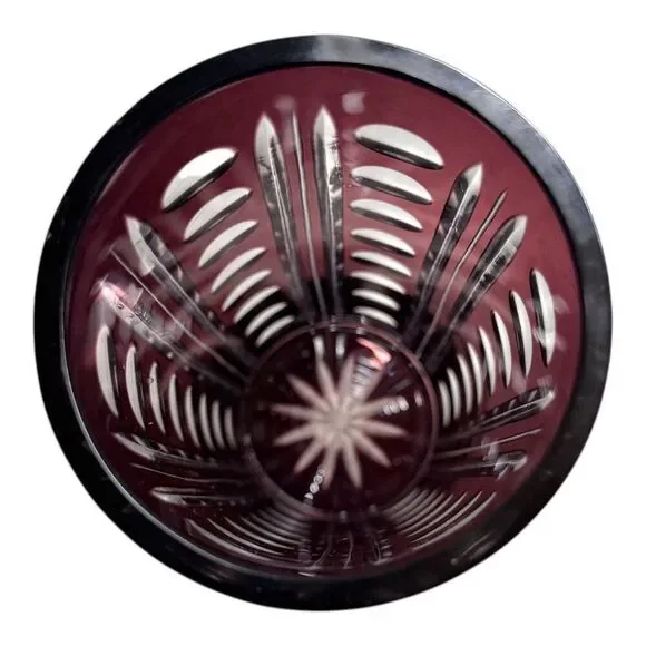 Vintage Hand Cut Bohemian Crystal VaseCircles Lines Geometric In Deep Amethyst