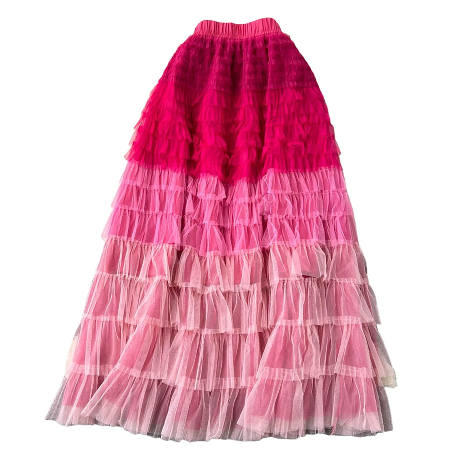 Layered ruffled tulle maxi skirt. and fully tulle outer. Soft, skin-friendly and drapey textured