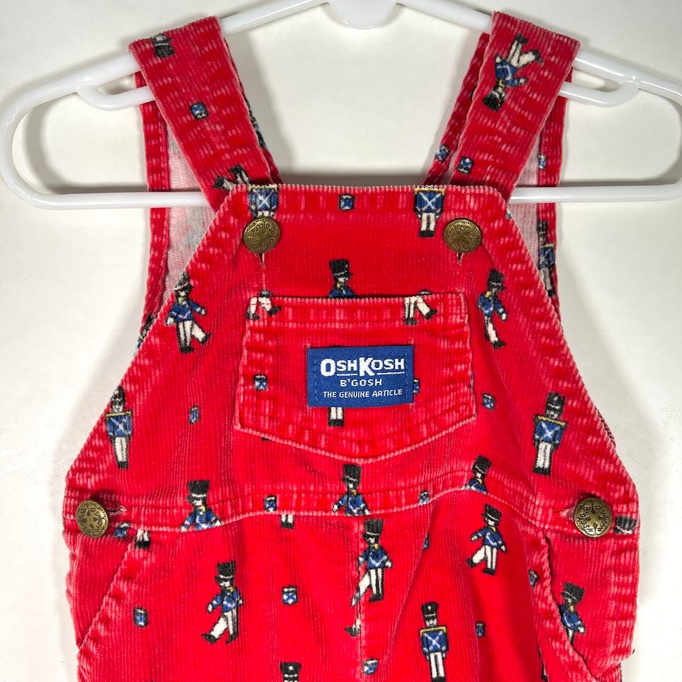 Vintage OshKosh B’Gosh Vestbak Toy Soldier Corduroy Overalls 3/6 Months Red Made in USA Union-Made