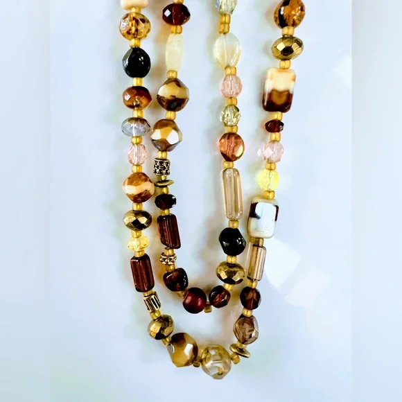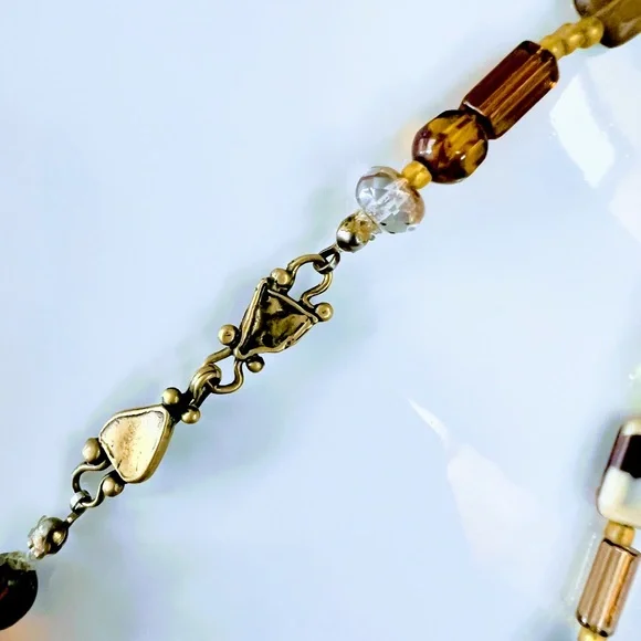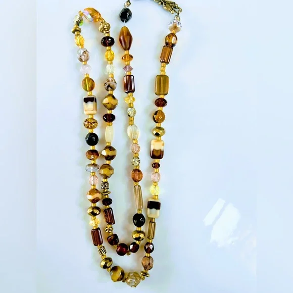 Vintage Unsigned MIRIAM HASKELLAmber Glass Gripoix Czech Swirl Bead Necklace 1920sVintage Signed MIRIAM HASKELL Amber Glass Gripoix Czech Swirl Bead Necklace.Fabulous Haskell necklace! Each glass piece was hand made and completely unique. Strung tightly (see last photo) otherwise really great vintage condition.Measures about 30” long. Can be worn single or double stranded.RARE AND COLLECTABLE!