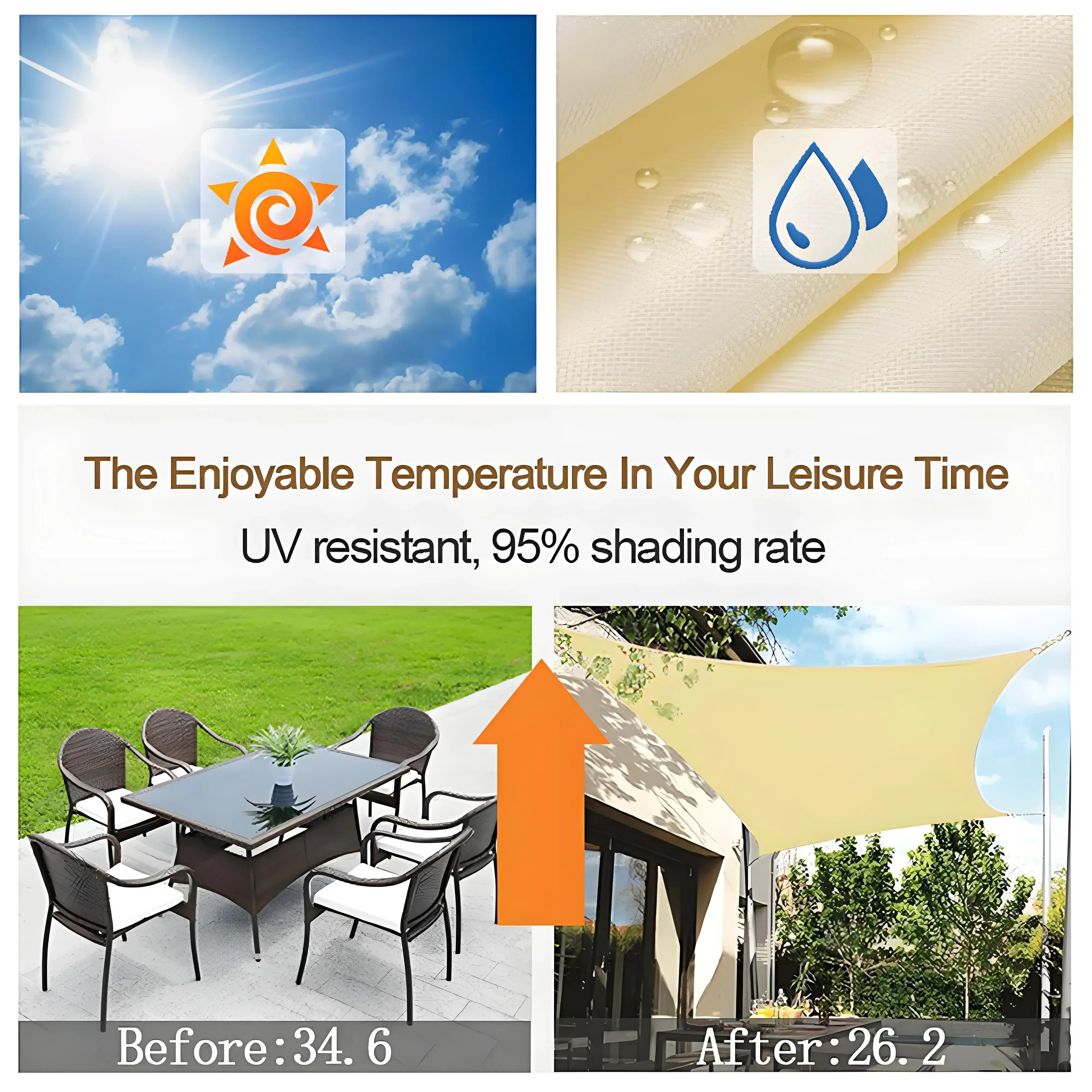This Shade Sail makes a restful, shady spot on your patio, backyard, playground, park, deck, pool.