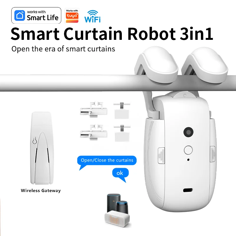 Wifi 3 in 1 Smart Curtain Motor Opener Aluminum Motorized Curtain System Automatic Electric Curtain Track