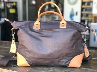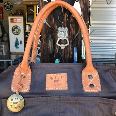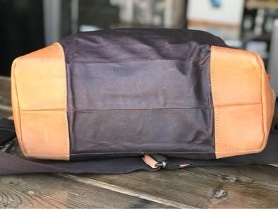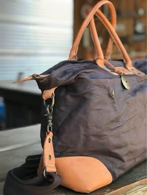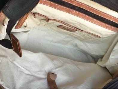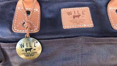 Bag was a gift. Never used. Coated dark chocolate canvas with natural top grain leather handles, reinforcement,, and accents. Double rolled leather handles. Removable adjustable soft (heavy duty) woven shoulder strap. Metal hardware. Interior lined with off-white cotton. Internal and external pockets. Handmade in Eugene, Oregon by Will Leather Products. Original purchase price $295.00. It’s just not practical for the kind of traveling I do.