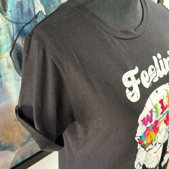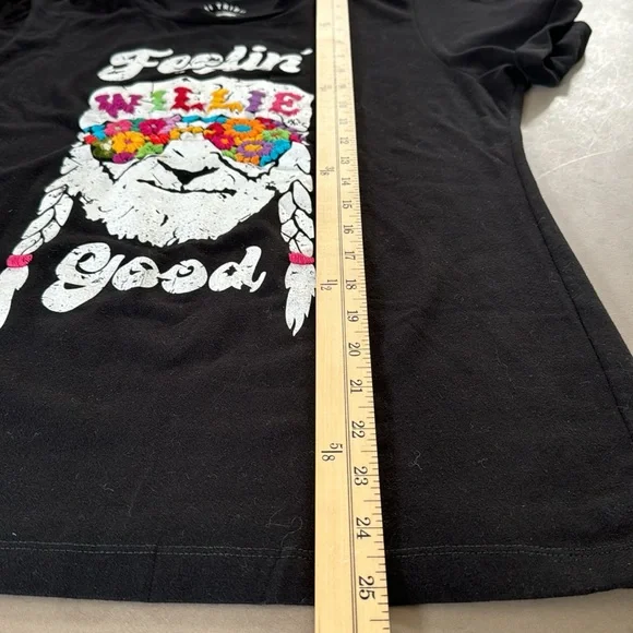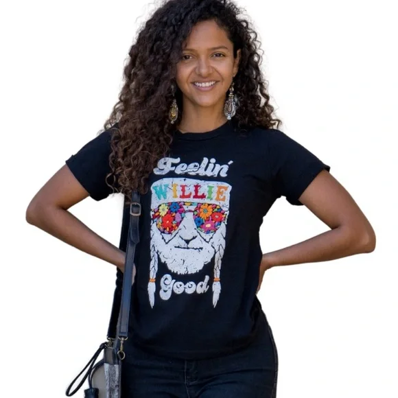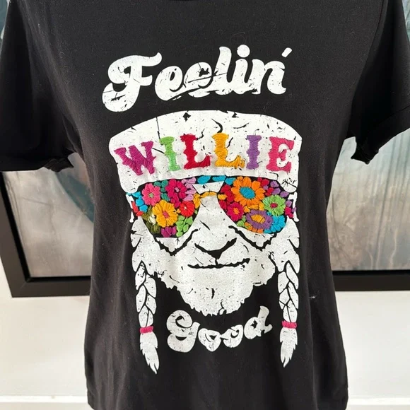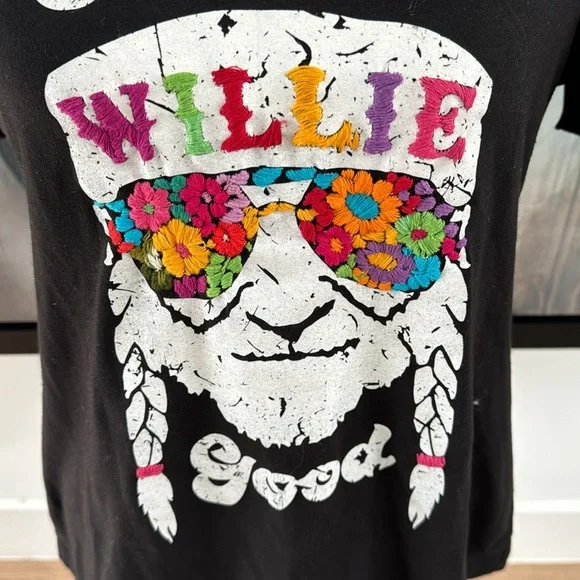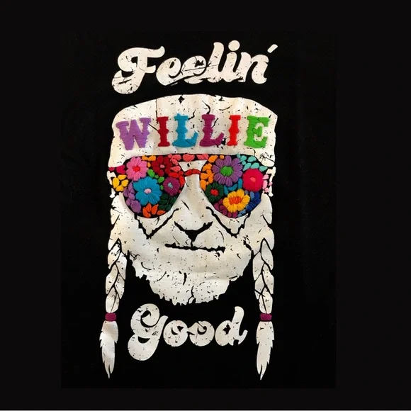 The traditional San Antonino Embroidery comes to enhance this unique t-shirt the perfect blend of urban style and artisanal craftsmanship. Made from 100% premium cotton, this t-shirt promises both comfort and style for every rock enthusiast.Perfect for the fans: Willie Nelson, an iconic figure in country music, is known for his distinctive voice, heartfelt lyrics, and pioneering influence on the outlaw country movement. His music blends traditional country with elements of jazz, blues, and folk, creating a sound that resonates with authenticity and emotion.Vibrant Embroidery: The colorful embroidery adds a touch of uniqueness, transforming a simple t-shirt into a statement piece.8-Hour Collaboration Process: Each t-shirt undergoes a meticulous 8-hour collaboration process, blending manual serigraphy or artisanal screen printing with the traditional San Antonino embroidery sewing technique.One of a Kind: Handcrafted by skilled artisans, no two t-shirts are exactly alike, ensuring that you own a unique piece.Join the legacy with this amazing T-shirt.Feeling Willie Good - Willie Nelson, ACL, Music festival, Austin city Limits, Austin, TXTurn garment inside-out to washHand wash with cold waterDo not use bleachHang to dryDo not iron on embroideryMedium: Length: 25"Chest: 18"Shoulders: 14.5"Arm: 9"Neck: 6"