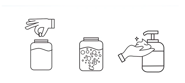 Prepare a bottle of water, put the effervescent tablets into the water, let it sit for 5 to 10 minutes, and a bottle of hand sanitizer will be completed, which is very simple.