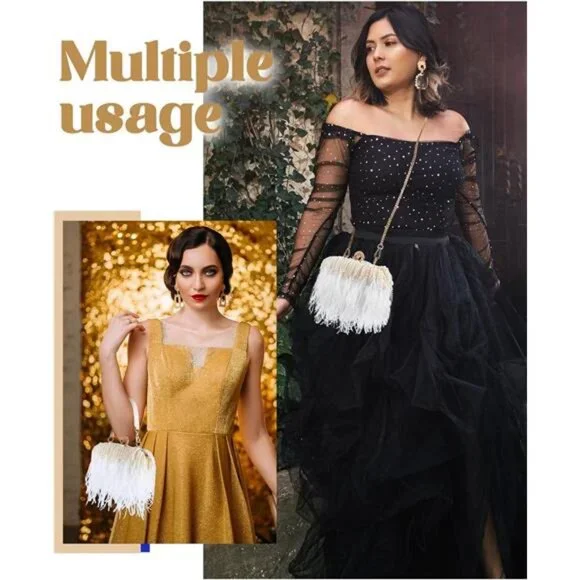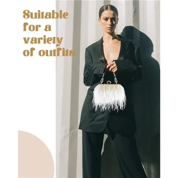 Products Include: ostrich feather handbag is very elegant and made of ostrich feathers, which is enough to match any evening dress you wear. The feather bag is simple and gorgeous, making you the focus of the partyFluffy ostrich feather purse is made of real natural ostrich feathers. Combined with artificial and careful sewing,the bag is sewed with a tight feather layer. The feathers are thick and elegant under the wind without worrying feather flying everywhereWomen feather shoulder bag is about 7.1 x 3.8 x 2.1 inch; manual measurement may have deviation; moderate size, exquisite and beautiful and it can hold mobile phone, lipstick, tiny wallet and couple other small things; It looks fabulous for a dinner date wedding or even for an afternoon tea with your partners.