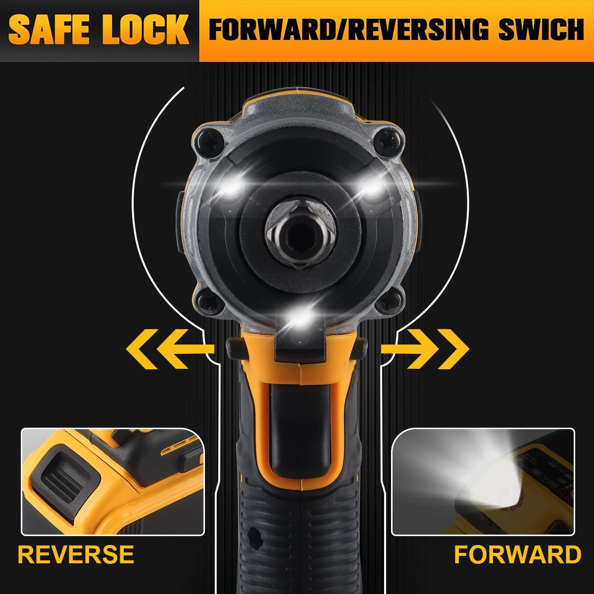 ⭐[EFFICIENT BRUSHLESS-MOTOR] -Cordless 1/2” Impact Gun boasts a powerful Brushless-Motor that offers 2 speed modes and up to 2200RPM for efficient and effortless usage. Gain the advantage of longer running time of 50% compared to conventional motors.