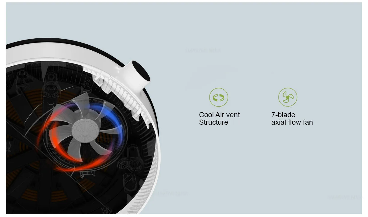 The hot and cool air vents are isolated to prevent hot air from reentering, reducing the internal load. A 7-blade axial flow fan further enhances heat dissipation to extend product life.