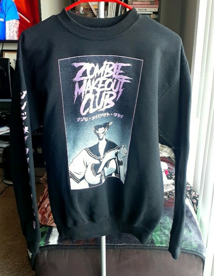 XS Zombie Makeout Club Pullover Sweatshirt Anime Crewneck Sweater Zombie Sweater