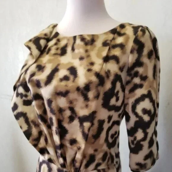 In perfect condition like new Yoana Baraschi Anthropology leopard 3/4 sleeve dress with ruffle detailing on the side of the bust.side zipper, shoulders are 13in bust is 18in waist is 15in armpit down is 28in100% silk#women #fashion #trend #chic #cute#fun #likeNew #style #stylish #trending #classic #beautiful #elegent #Summer #nwt #Spring #winter #fall #chupchick#women #fashion #trend #chic #likeNew #style #stylish #trending#dress #Anthro #anthropology