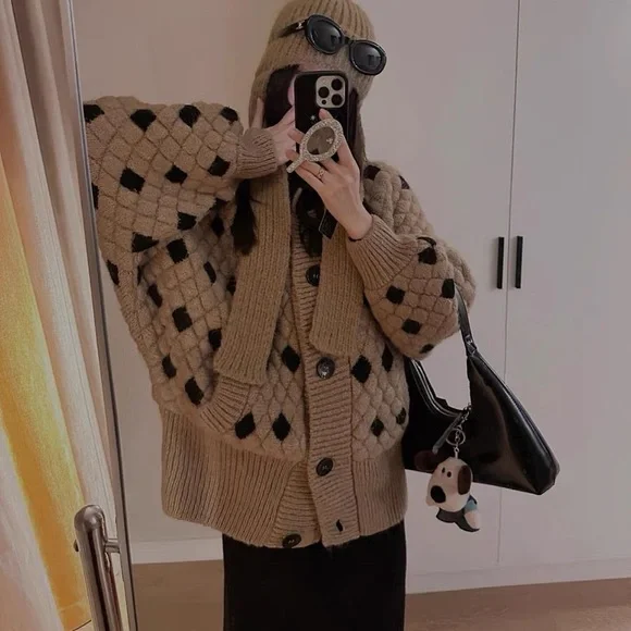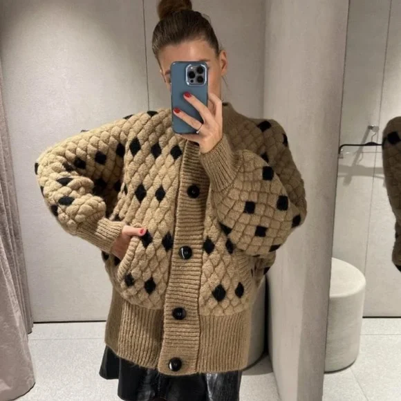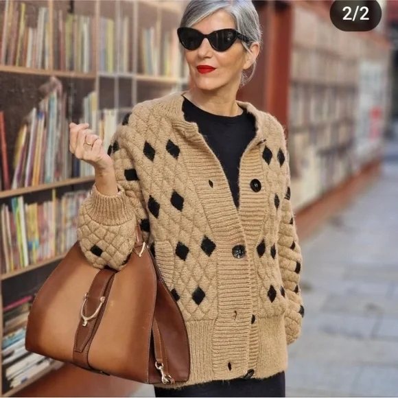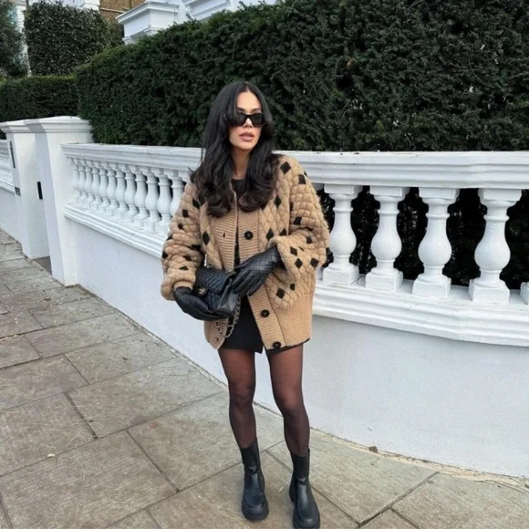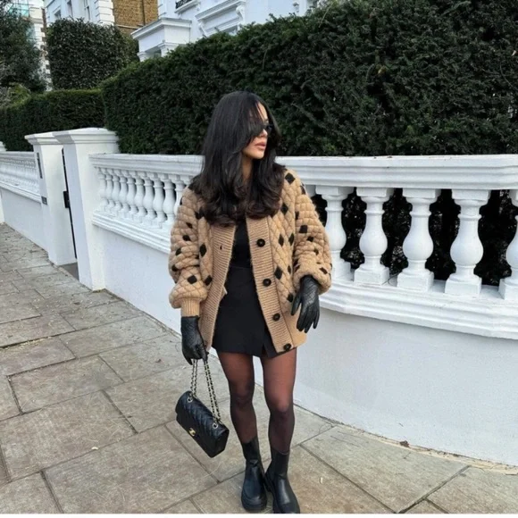 New with tag. blogger's favoriteCardigan with a high neck and long sleeves.Featuring front pockets, front button fastening and ribbed trims.This item run large OUTER SHELLMAIN FABRIC6% wool 45% acrylic34% polyester14% polyamide1% elastaneSECONDARY FABRIC42% acrylic 26% polyamide22% polyester 10% wool