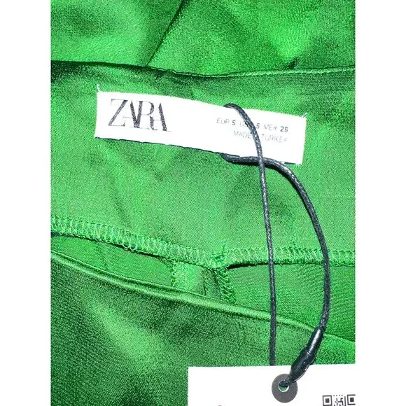 These Zara satin pants offer a luxurious feel and elegant appearance. The wide-leg design provides comfort and a modern silhouette, suitable for various settings.• Wide-leg design• Satin finish• Side Zip closure• Brand new with tags• Made in Turkey* Waist across=14(28in) Length=44in. Inseam=34in1533SHG