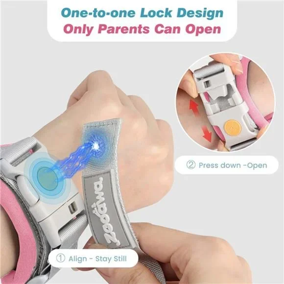 🧿【Upgraded Magnetic Unlock Toddler Leash】: Our anti lost wrist link using an upgraded magnetic induction lock to keep your children safe instead of pulling off or wriggling out of their wristbands, which is much safer and stronger than the older version.🧿【Soft and Comfortable】: Soft padded wrist strap is made of sponge guarantees a highest comfort level for both adult and kids at a sudden tug. Protect your kids and your wrist respectively and provide flexible and safe kids activities.🧿【High Quality to Prevent Breakage】: Children's safety comes first. Our toddler safety leash is made of anti-cut stainless steel material, and the surface of PU materials won't be cut with ordinary tools, which is safer and more resistant to breakage. Ensure kids' safety while offering them more confidence and space to explore the world.🧿【Adjustable Length, More Freedom】: The length of our toddler leash can be adjusted according to your needs, the length is enough to give more freedom to your child, and your kids will love to take it. The 360° rotating metal connector ensure kids' safety while offering them more freedom and space to explore the world.🧿【Night Reflective Strip】: The reflective strip of our kids leash helps you see the wrist link clearly even in the dark environment or evening, safer and freer to toddler or kids right under your nose while giving them more personal space.